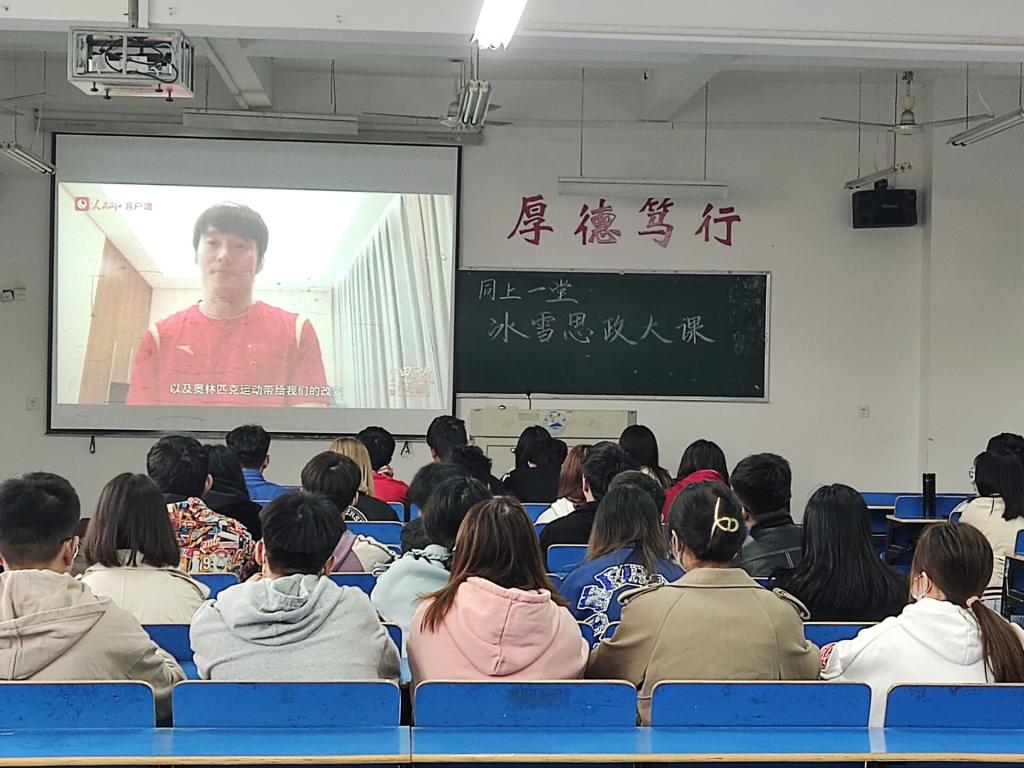 为深入贯彻习近平总书记在北京冬奥会冬残奥会总结表彰大会上的重要讲话精神,4月16日下午,beat365正版唯一官网必一组织全体学生观看了同上一堂“冰雪”思政大课。