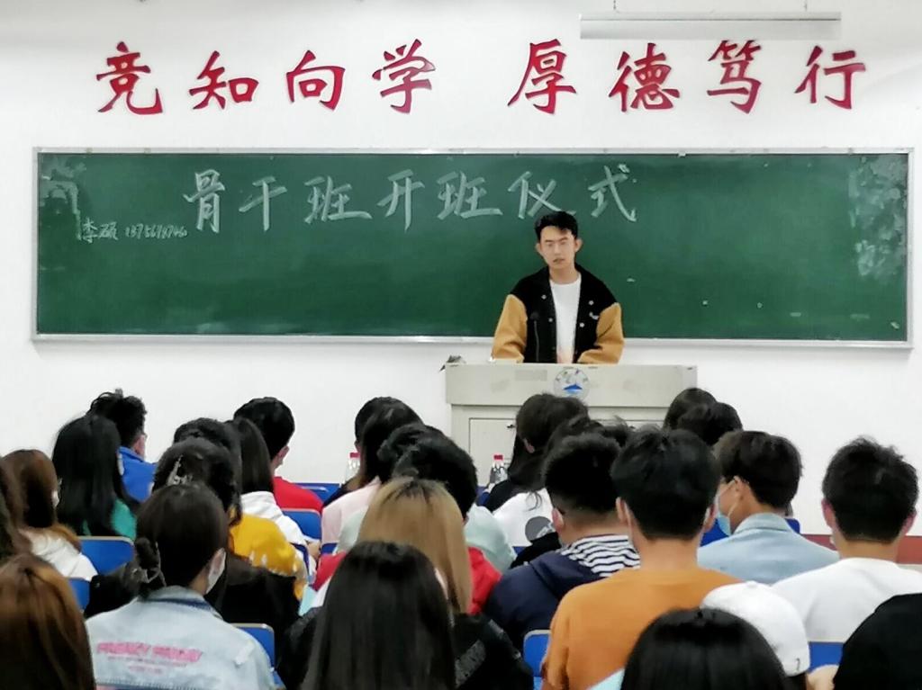 仪式伊始,同学们依次进行了自我介绍,并以游戏互动的方式加深了对彼此的印象。之后骨干班负责人介绍了学员手册,阐述了请假手续、仪容仪表、个人行为规范等方面的要求,着重强调了骨干班的考核制度,希望在场同学都能够把握住机会,在实践中锻炼和磨练自己,实现自身的发展。
