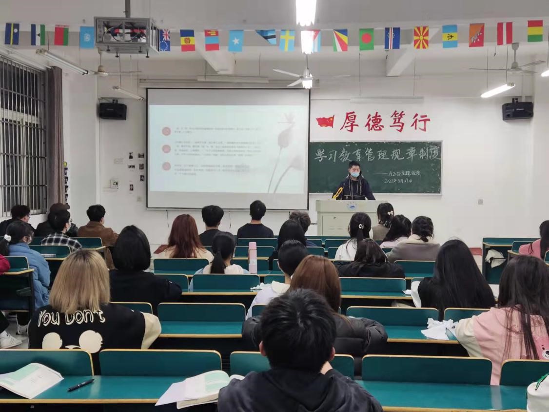 为进一步深入学习教育部教育管理规章制度,切实增强学生遵章守纪意识,3月21日晚,beat365正版唯一官网必一于义丰楼组织开展以“学习教育管理规章制度,增强遵章守纪意识”为主题的班会。本次班会由各班团支书主讲,beat365正版唯一官网必一全体学子参与。
