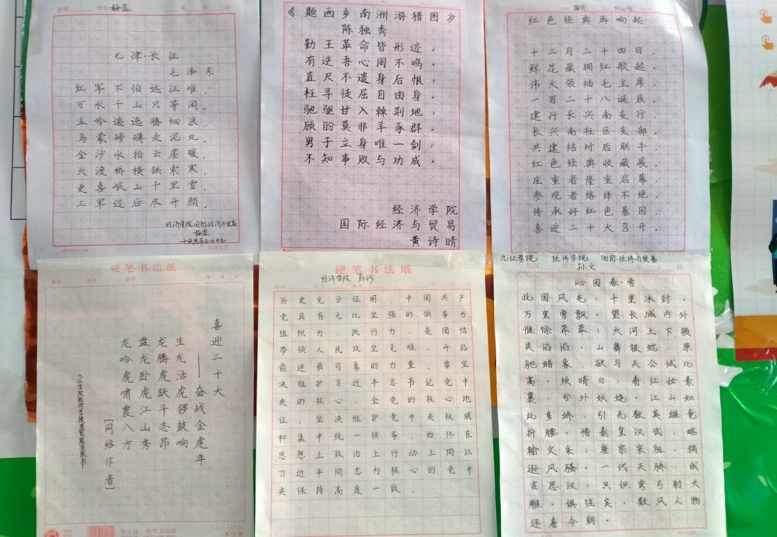 为弘扬中华传统文化,加深对书法的了解和认识,3月1日晚上七点,beat365正版唯一官网必一菁华国学社于义丰楼举办了以“我心向党喜迎二十大”为主题的书法活动。beat365正版唯一官网必一全体大一学子参加,优秀作品于义丰楼一楼大厅展示。