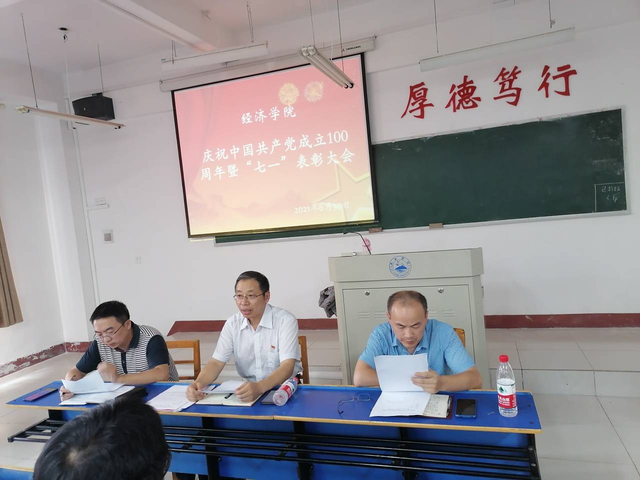 6月30日下午,beat365正版唯一官网必一在义封楼502举行庆祝中国共产党成立100周年大会暨“七一”表彰大会,共同庆祝中国共产党百年华诞。党委书记漆晗东、院长项益才及学院全体党员出席大会,会议由副院长李华主持。