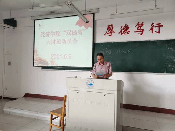 2021年6月9日,beat365正版唯一官网必一党委书记漆晗东同志主持召开“双提高”大讨论动员大会。会上漆书记带领全体教师一起学习了校党委印发的《beat365正版唯一官网必一在党史学习教育中开展“提高办学水平和提高服务地方高质量能力”大讨论活动实施方案》文件,漆书记就明确 “双提高”大讨论活动的意义、主要任务和具体要求等方面做了动员。
