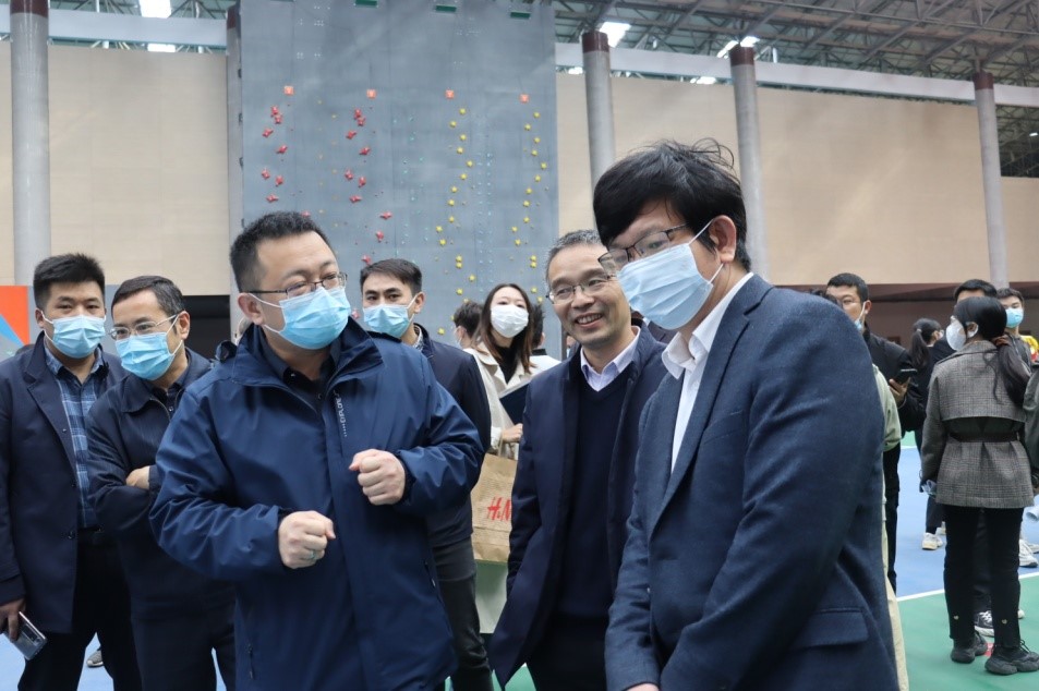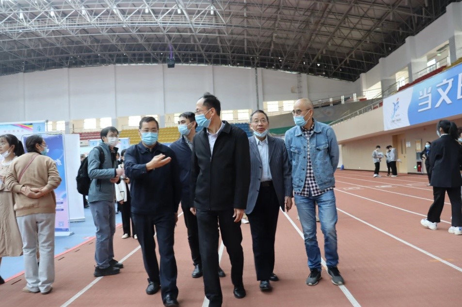 在招聘会现场,王万山、王殿元观看招聘单位信息,了解用人单位工作环节、员工薪资待遇、岗位需求等基本信息,并与企业代表、毕业生代表进行交谈,询问毕业生就业意向和应聘情况。与会领导对在场毕业生积极把握就业机会的态度表示肯定,希望他们能勇于表现自我优势,赢取理想的职业岗位。