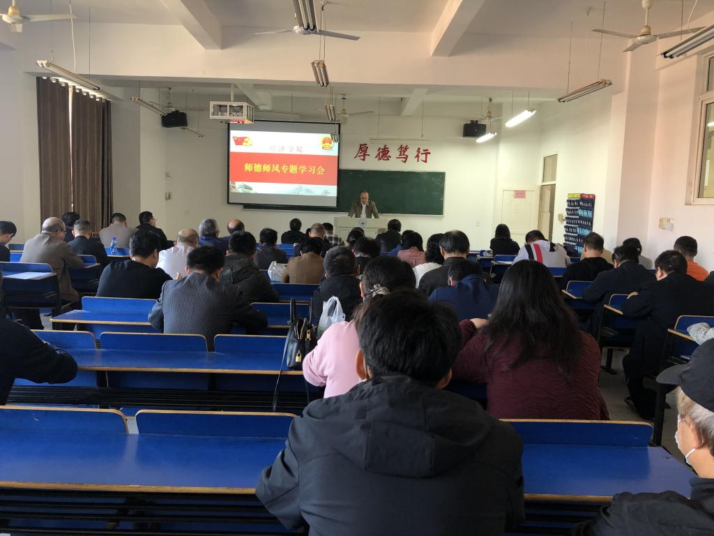 为进一步加强学院教师队伍师德师风建设,规范教师从教行为,强化教师职业道德,11月2日下午,beat365官网在义丰楼502召开师德师风专题学习会以及心理健康培训,院长项益才主持会议,学院领导班子成员和全体教师参会。