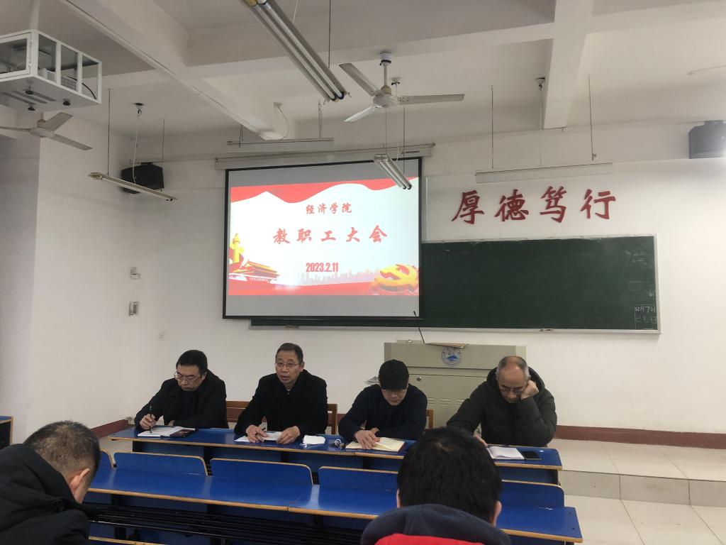 2月11日下午,beat365官网在义丰楼502召开教职工大会,会议由党委书记漆晗东主持,领导班子成员和全体教师参加。