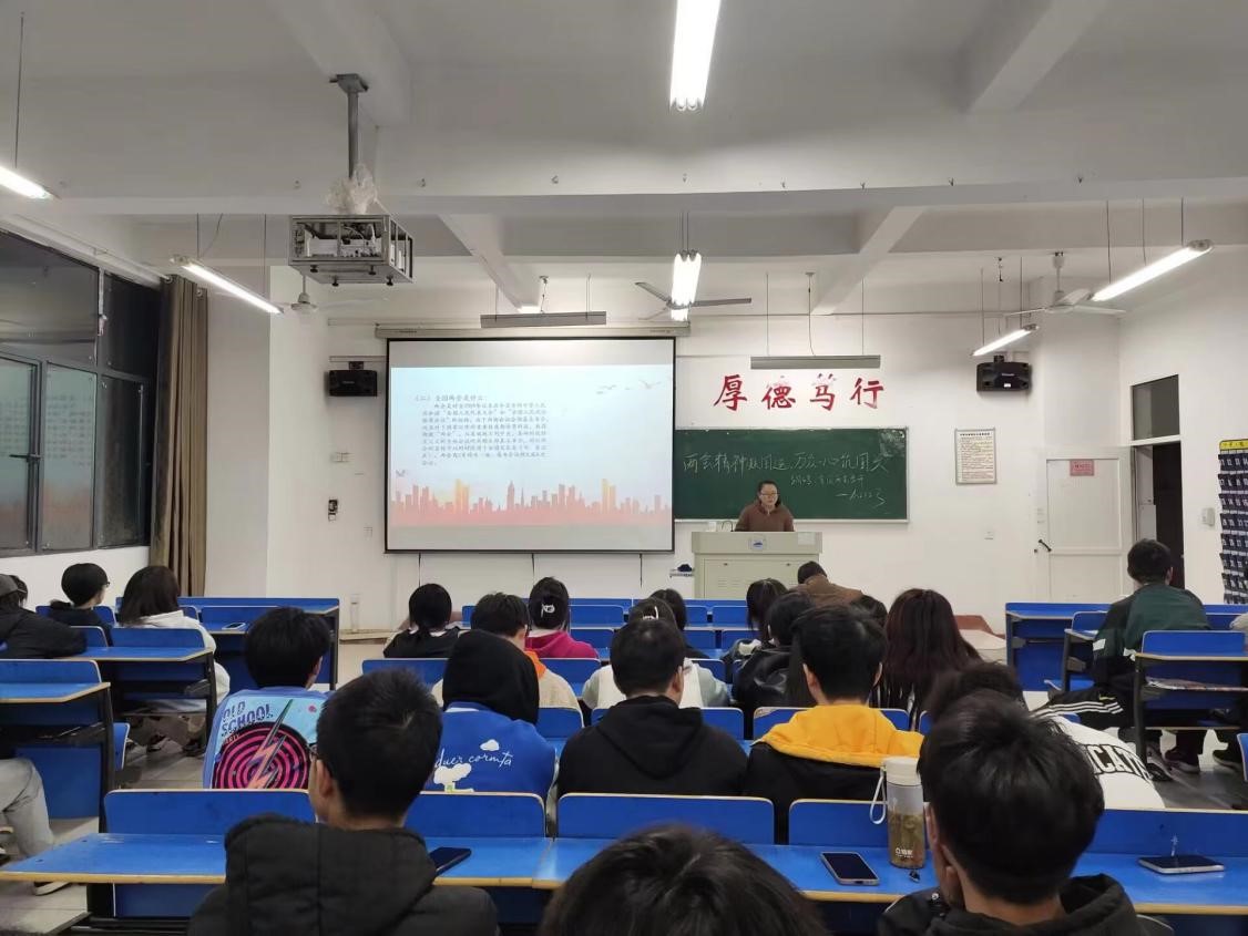 为深入学习贯彻全国两会精神,引导广大团员青年深刻领会、准确把握两会精神实质,切实增强团员青年的政治责任感和历史使命感,3月26日晚,beat365正版唯一官网必一组织开展了以“两会精神凝国运,万众一心筑国兴”为主题的团日活动。本次团日活动由各班团支书主讲,beat365正版唯一官网必一全体学生参加。