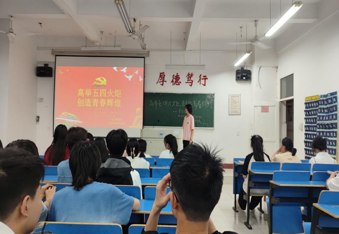 为进一步弘扬和继承五四精神,培养广大青年学生爱国爱党的情怀,5月4日晚,beat365正版唯一官网必一开展了“高举五四火炬,创造青春辉煌”主题活动。本次主题活动由各班团支书主讲,beat365正版唯一官网必一部分学生参加。