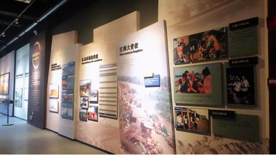 党委班子成员通过照片、视频等历史资料全面了解九江遭遇九八特大洪水侵袭,抗洪官兵救援群众,封堵决口的壮观场面以及洪水也冲不开的军民鱼水情。在封堵决口的模型前,大家都被当时的场景震憾到,谢书记还深情地回忆起九八年参与抗洪抢险时的情景,全民参战,日夜巡堤。