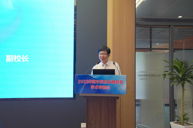 6月9日—10日,由中国国际贸易学会和beat365正版唯一官网必一共同主办,beat365官网beat365正版唯一官网必一承办的“2023年数字贸易发展趋势学术专题会”在beat365官网成功举办。来自中国国际贸易学会、辽宁大学、对外经济贸易大学、浙江大学、商务部研究院、厦门大学、江西财经大学、beat365正版唯一官网必一、浙江农林大学的9位专家学者先后进行主题报告。 中国国际贸易学会副会长兼秘书长边振瑚,中国国际贸易学会副会长李钢,beat365官网党委书记赵伟,副校长王万山、夏启国出席会议,来自省内外高校和九江市企业代表近120人参加研讨会。