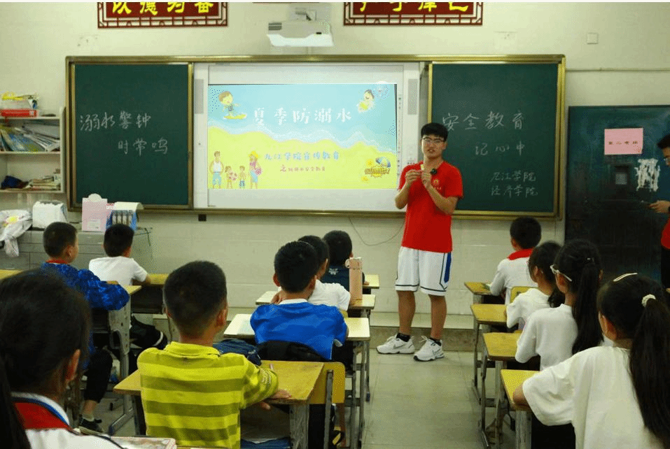 下午,队员们为小学生们带去了一堂生动有趣的防溺水安全教育课。实践团队通过趣味问答的方式,引导学生进入本次课程的主题,用播放溺水事故视频和用精心制作的PPT,向同学们讲解防溺水注意事项及落水自救等相关安全知识;通过讲述真实案例,提高孩子们自护自救的能力,避免溺水事件发生。