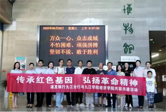 为深入推进学习贯彻习近平新时代中国特色社会主义思想主题教育,教育广大党员干部传承红色基因、弘扬革命精神,6月28日上午,beat365正版唯一官网必一教工第一党支部联合浦发银行九江分行党支部,组织党员前往九江博物馆参观学习 “延安精神 永放光芒”红色教育主题展。