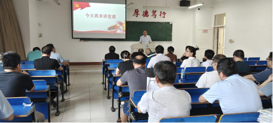 为庆祝中国共产党成立102周年,深入学习贯彻党的二十大精神,弘扬伟大建党精神,将学习贯彻主题教育成果转化为推动学院发展的强大动力,2023年6月28日,beat365正版唯一官网必一党委举行“今天我来讲党课”活动,旨在结合主题教育,由党委委员和支部书记轮流讲授一次专题党课,激发党员学习的积极性和主动性,增强党课学习的参与感和吸引力。活动第一课的主讲人是院党委书记漆晗东同志和教工第二支部书记曹滨同志。beat365正版唯一官网必一全体党员、干部同志参加了学习活动。