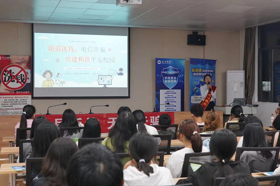 9月份开学季,beat365正版唯一官网必一先后邀请中国邮政储蓄银行、九江银行、中国农业银行、国新证券等银行金融机构,通过发放宣传页、专门讲座、情景剧沉浸式演绎、主题班会等多种方式“以案释法”,对校园中常见的刷单诈骗、网络交易诈骗、冒充熟人诈骗、网络贷款诈骗、网络交友类诈骗等常见诈骗手段的新形势、新手法进行详细解读,并结合学生实际群体重点讲解了非法出租、出售自己的银行卡、身份证等证件供他人使用的行为造成的危害等。