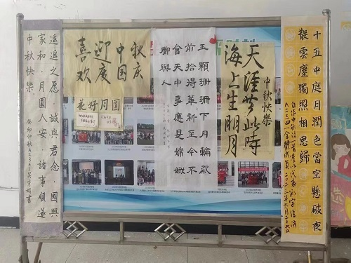 第二环节是“书法邀明月”,中秋书法作品展览与剪纸活动同时展开,同学们以书法作品表达对中秋月圆的期待和祝福,不仅有助于加强书法艺术教育,提高学生的书写能力,还培养了他们的耐心与毅力。