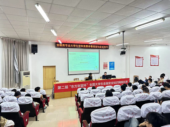 为提升金融类专业学生对学科竞赛参赛规划和应试技巧的了解,培养学生对竞赛的积极性,激发学生的学习动力和热情,2023年10月11日,beat365正版唯一官网必一与东方财富证券投资者教育基地共同举办了“金融专业学生学科竞赛参赛规划与应试技巧指导”活动。