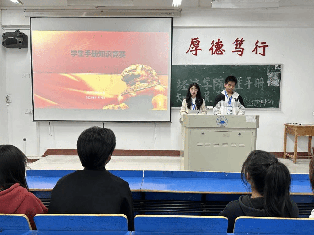 活动开始,主持人向各班级参赛选手阐述其比赛规则,并进行抽签分组,以每两个班级为一组进行积分淘汰制比赛。为了丰富比赛内容与加强比赛的公平性,比赛又分为预赛,半决赛与决赛,且拥有单选题,多选题以及填空题等题型。活动中,各班级选手需在限定时间内浏览题目并给出答案,极大地加深了选手们有关学生手册的知识,也有助于其更深入地了解学生手册。在比赛最后,主持人为获奖选手颁发奖状与礼品,学生手册知识竞赛活动圆满结束。