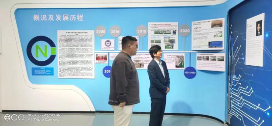 南昌大学共青城光氢储技术研究院张皓然主任,向王校长介绍了推广光氢储技术发展绿色能源的意义,邀请王校长参观了研究院新能源技术展厅和光氢储智能互补示范电站,双方就“双碳”目标与新能源产业、产教融合发展、服务地方、学生就业等问题进行友好交流。