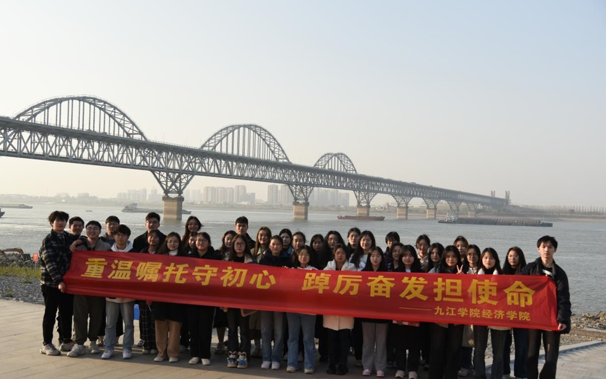 然后,大家来到了长江国家文化公园九江段,沿着总书记的足迹,在芦苇荡漾的公园绿道亲水观江,深刻领悟总书记“要从人与自然和谐共生的生命共同体出发,着眼中华民族永续发展,把长江保护好”的重要指示,牢记“要把长江文化保护好、传承好、弘扬好,延续历史文脉,坚定文化自信”的殷殷嘱托。随后,全体学生党员在琵琶亭下发出“请党放心,强国有我”的铮铮誓言,激昂的声调,坚定的眼神充满了信心与力量,表达了对党和国家的忠诚与热爱。