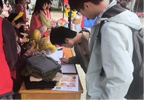 为了帮助贫困地区物资匮乏的家庭,培养大学生资源回收利用的观念,提高学生的社会责任感。3月27日至29日下午,beat365正版唯一官网必一于三食堂广场组织开展“以衣结缘,让爱循环”主题活动。