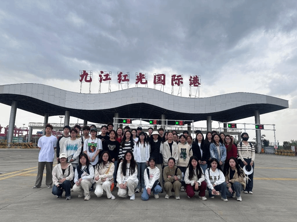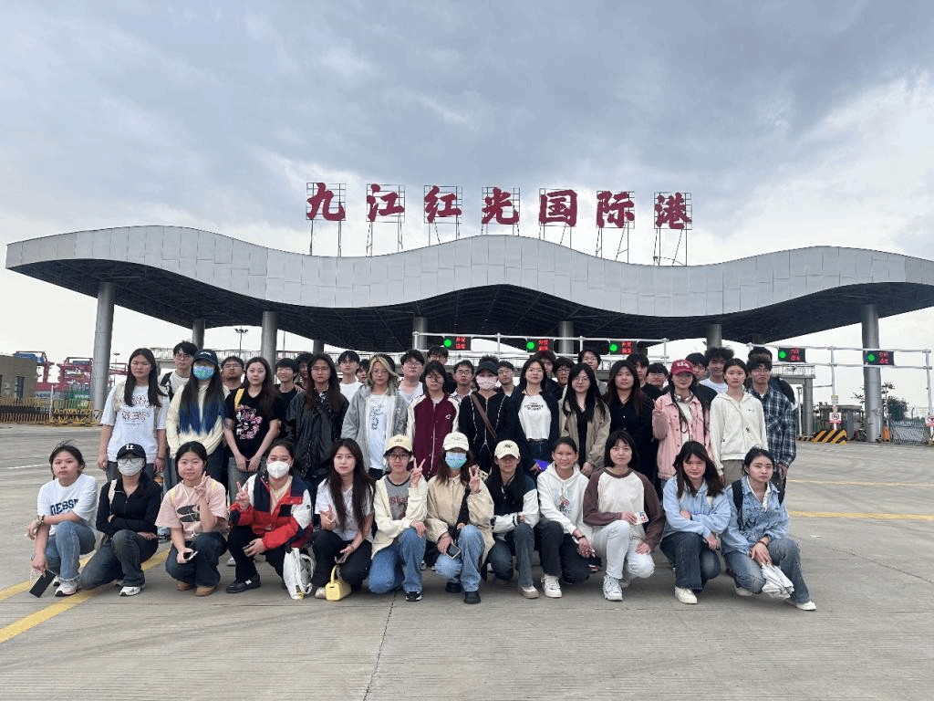4月10日下午,师生们首先来到了九江红光国际港。作为区域内重要的水运物流中心,九江红光国际港展示了现代化港口的运作流程和先进的物流技术。学生们在港口工作人员的引导下,参观了货物的装卸区、集装箱堆场,并听取了关于港口日常运营的详细介绍。此次活动使学生们对国际贸易的物流环节有了更加直观的感受,对港口在促进地区经济发展中的作用有了更深刻的认识。