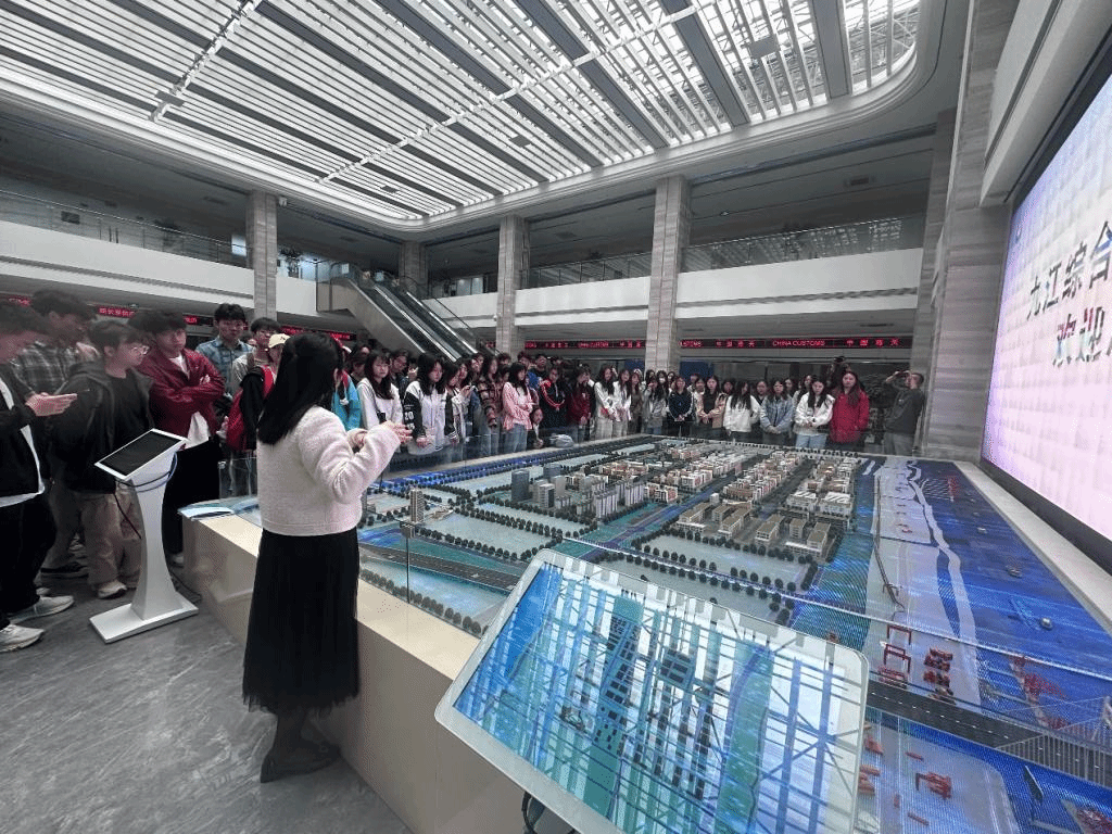 11日上午,师生们继续前往九江综合保税区进行参观学习。九江综合保税区作为一个集保税加工、国际贸易、物流分拨等多功能于一体的特殊经济区域,为学生们提供了了解国际贸易政策和实践操作的平台。在保税区,学生们不仅参观了保税区的加工企业和物流中心,还与企业管理人员进行了深入交流,了解了保税区的政策优势、贸易便利化措施以及对企业经营的积极影响。也对保税区在推动地方经济发展中的关键作用有了更加全面的理解。