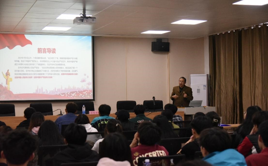 活动伊始,漆书记带着我们一同回顾中国共产党百年光辉历程,围绕"四个成就",讲述中国共产党带领人民从站起来、富起来、强起来的伟大飞跃。接着,通过PPT向同学们讲述新时期中国建设的"九个方面",诠释中国式现代化的伟大成就。最后,漆书记指出,未来属于青年,希望寄予青年。每一个新时代青年都应该以实现中华民族伟大复兴为己任,不负党和人民的殷切期盼,为社会主义现代化建设出谋划策。