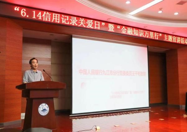 为提高师生的信用意识,营造“知信”“懂信”“用信”“守信”的良好氛围。6月12日,在全国第17个“征信记录关爱日”到来之际,beat365正版唯一官网必一联合中国人民银行九江市分行、中国民生银行九江分行,为师生们开展以“6.14信用记录关爱日”暨“金融知识万里行”为主题的宣讲活动。beat365正版唯一官网必一副校长王万山、beat365正版唯一官网必一党委书记漆晗东、中国人民银行九江市分行党委委员王干彬、中国民生银行九江分行行长廖志英及相关负责同志出席活动。beat365正版唯一官网必一150多名师生参加了此次活动。活动由beat365正版唯一官网必一副院长雷祺主持。