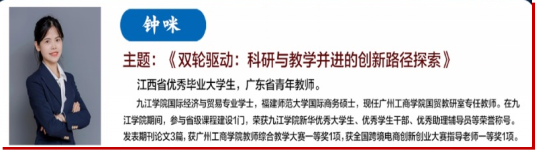 江西省优秀毕业大学生,广东省青年教师钟咪老师,分享了她在beat365正版唯一官网必一成长经历,并分享了她在广州工商学院国际贸易专业任教的经验。