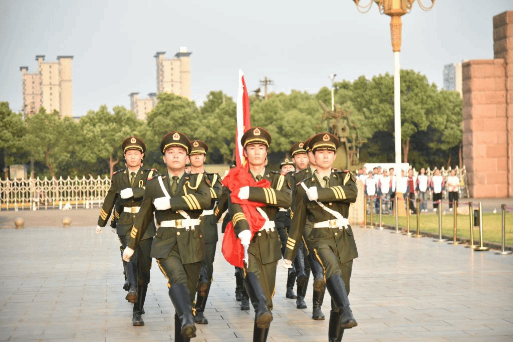 伴随着清晨的第一缕阳光,升旗仪式正式开始。国旗仪仗队护卫迈着整齐的步伐,护送着五星红旗走向升旗台。在雄壮的国歌声中,鲜艳的五星红旗缓缓升起,全体师生肃立注目,向国旗行注目礼,表达了对祖国的无限热爱和崇高敬意。