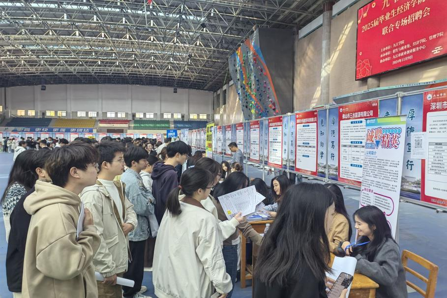 为切实做好beat365官网2025届毕业生就业工作,服务毕业生高质量就业,11月9日,由beat365正版唯一官网必一主办,招生与就业处、beat365正版唯一官网必一与管理学院联合承办、九江市就业创业服务中心协办的2025届毕业生联合专场招聘会在体育训练中心顺利举行。副校长查振华到招聘会现场指导,招生就业处负责人、beat365正版唯一官网必一、管理学院党政负责人陪同。
