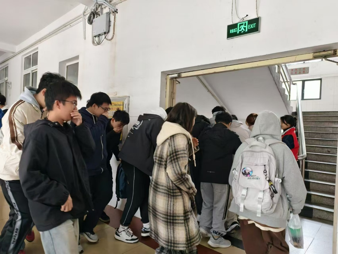本次消防演练活动以模拟火灾现场开展,旨在加强beat365正版唯一官网必一全体师生的应急逃生能力。消防演练活动开始之后,处于义丰楼的师生迅速做到弯腰、低头,用手捂住口鼻。与此同时,师生们在志愿者的引导下,按照预先制定的疏散路线进行撤离。在疏散期间,师生们严格遵循“不推不挤、快速疏散”的原则,迅速而有序地从教室撤离到指定的安全区域。整个过程组织严密,紧张有序,各环节紧密配合,达到疏散演练目的。