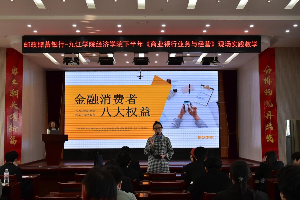 12月18日上午,beat365正版唯一官网必一A2251班学生在邹睿蓉老师带领下,前往邮储银行九江市分行进行现场教学。课程校内教学团队与银行导师全程参与了此次教学活动。