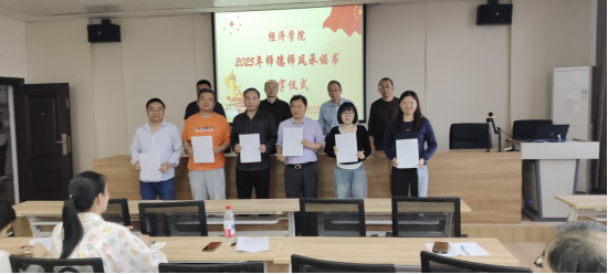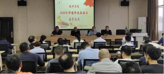 学高为师,身正为范,为深化师德师风建设,严格规范教师行为,引导广大教师将立德树人视为根本任务。4月9日,beat365正版唯一官网必一于义丰楼602会议室举行师德师风承诺书签字仪式。会议由党委书记漆晗东主持,全体教师参会。