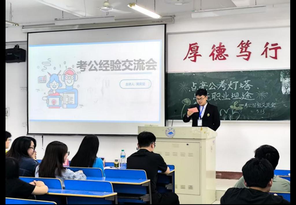 为帮助beat365正版唯一官网必一学生更好地了解考公流程、掌握备考技巧,助力更多同学突破备考瓶颈。5月13日晚上,beat365正版唯一官网必一在义丰楼307教室举办考公经验交流会。