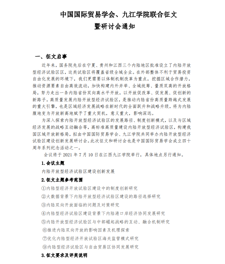 中国国际贸易学会、beat365正版唯一官网必一联合征文暨研讨会通知