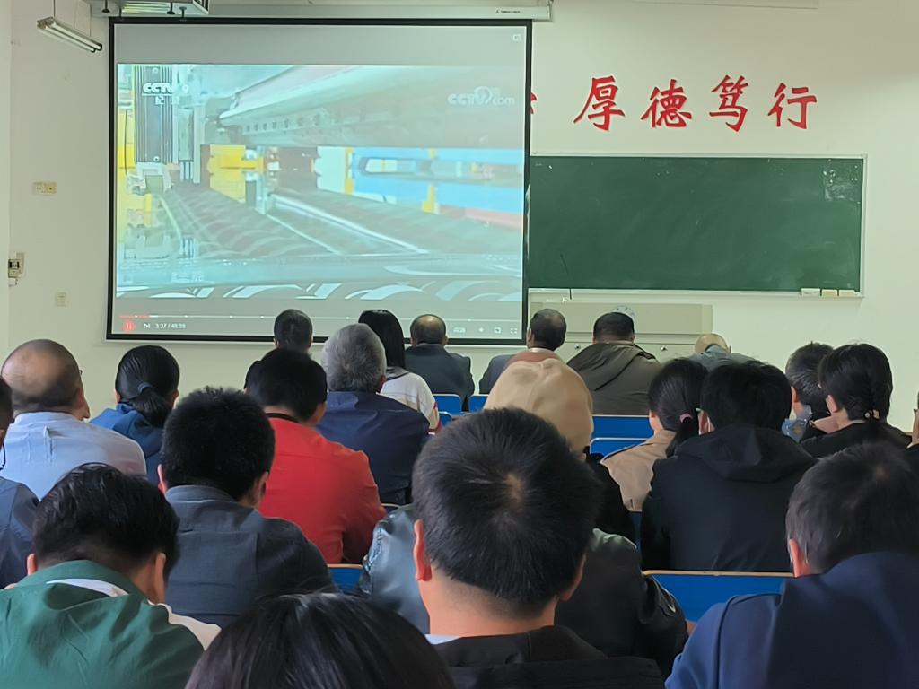 会上,通过集体观看16日晚《新闻联播》,让全体教师重温二十大开幕盛况,了解党的二十大盛会实况和重要内容,学习二十大主要精神。集体观看《创新中国》大型记录片第三集《制造》,该片讲述的是“现在是中国制造的关键时期,无数的中国企业已经开始行动;从可弯折的超薄玻璃到新型的装配式建筑,从国产大客机的诞生到控制精度达3微米的机床,从世界最高的臂架泵车到个性化的3D打印。这是一场强者的角逐,谁抢得先机,便获得未来。创新,引领人们一步步塑造着中国制造的新面貌。”