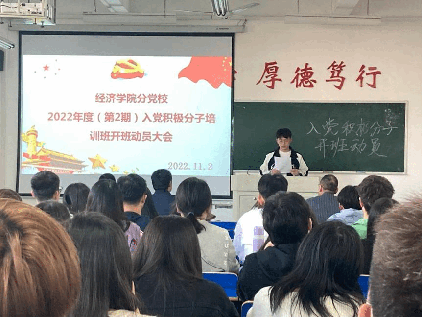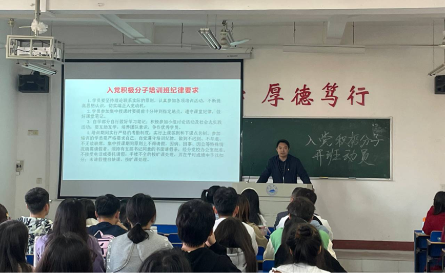 为进一步做好党员发展工作,严把入党“第一关”,提高入党积极分子的思想政治素质,2022年11月2日beat365正版唯一官网必一举行入党积极分子培训班开班动员大会。在开班仪式上,丁晓权老师讲述了培训计划、安排及注意事项,要求参加培训的学员课上课下认真思考,当先锋,作表率,以优异成绩接受组织的考验。