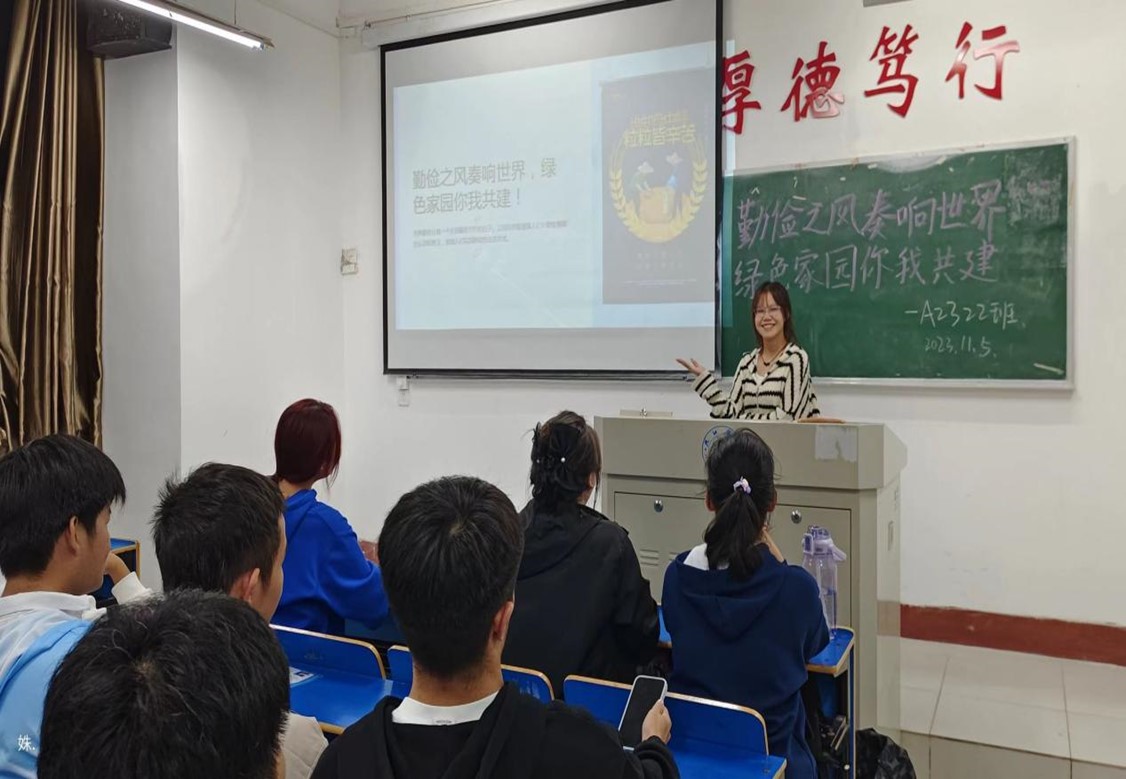 “勤俭之风奏响世界,绿色家园你我共建”,这号召人们勤俭节约以共同应对日益严重的资源危机,进而促进社会的健康可持续发展。主讲人带领同学们开展活动,增强同学们爱惜资源的意识,提高勤俭节约的自觉性。