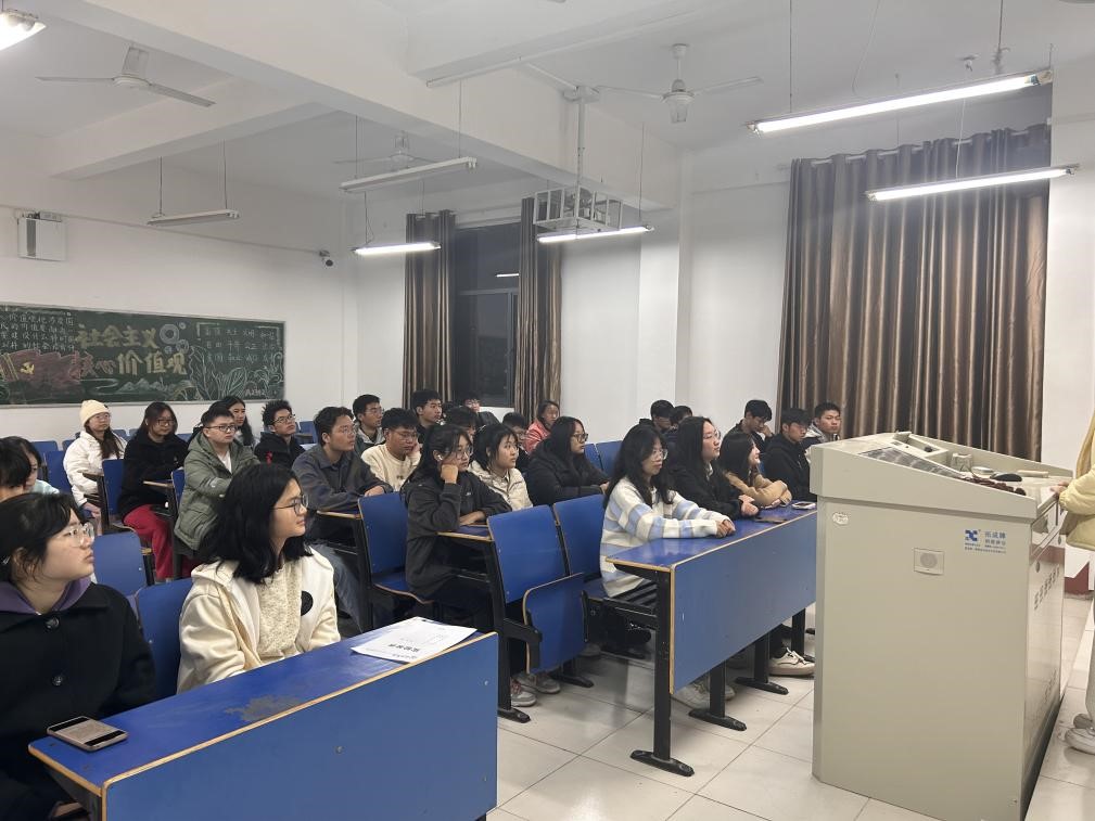 活动伊始,各班团支书以PPT的形式带领全体同学了解就业形势。主讲人就短片内容向在场大学生分析了当前就业的严峻形势与职场现状,针对大学生就业压力大的现状,同学们也分享了自己独到的见解,并且指出现各公司所需要的人才类型——踏实肯干、积极向上,要具有良好的学习习惯和生活态度。