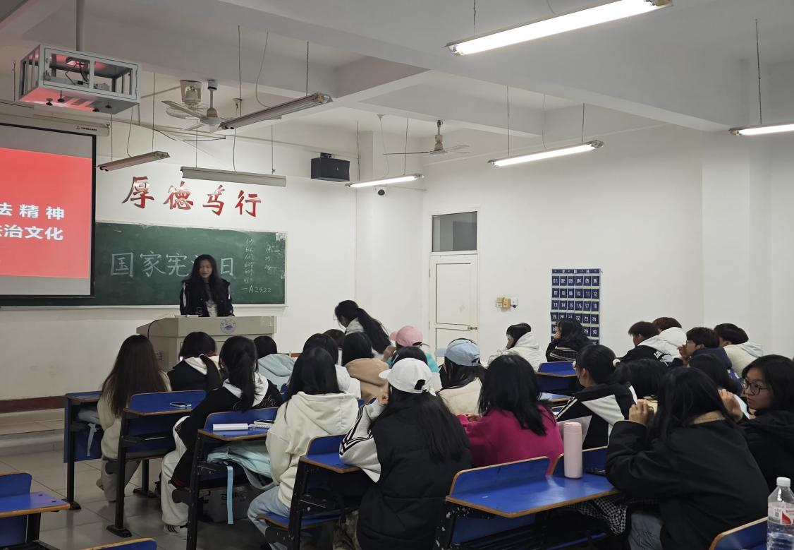 在庄严肃穆的氛围中,本次活动以全员朗诵宪法条文拉开序幕。紧接着,主讲人以刚刚朗诵的条文为切入点,剖析宪法在当代多元社会格局中所蕴含的核心要旨,逐步向同学们揭示了宪法精神的深邃内涵以及其与时代发展相契合的重大意义。台下的同学们全神贯注,纷纷表示要以自身行动践行宪法理念,守护这来之不易的法治基石。