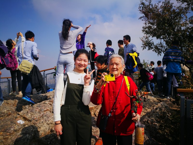 到达山顶之后,经过了短暂的休息整顿,我们选择了最佳的角度俯瞰整个南京。当天天气非常不错,阳光正好,还偶遇了成功登顶但已是90多岁高龄的老奶奶,可以说是非常佩服她了,愿奶奶长寿安康。