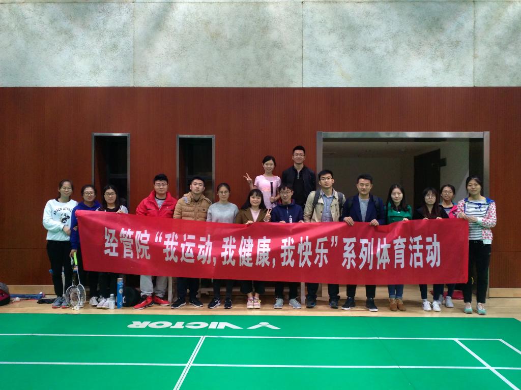 2017年经管学院研究生羽毛球赛于11月18日在体育中心羽毛球馆成功举办。作为“我运动、我健康、我快乐”系列体育活动之一,本次比赛由经管院研究生会体育部主办,共设“男单”、“女单”、“双打友谊赛”三个大项,共有20余名羽毛球爱好者在这里联袂上演了一场精彩的比赛。