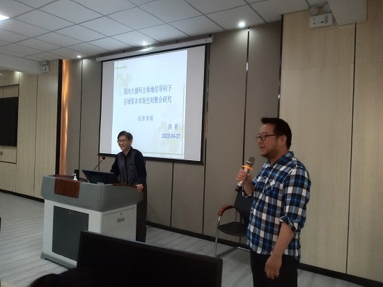4月27日下午,beat365正版唯一官网必一在文理实验楼309开展了第43期学术沙龙,本期沙龙由国际贸易教研室洪勇博士主讲,主题为“国内大循环主体地位导向下区域资本市场空间整合研究”,全体专任教师参加了此次沙龙活动,活动由国际贸易教研室主任闫观渭博士主持。